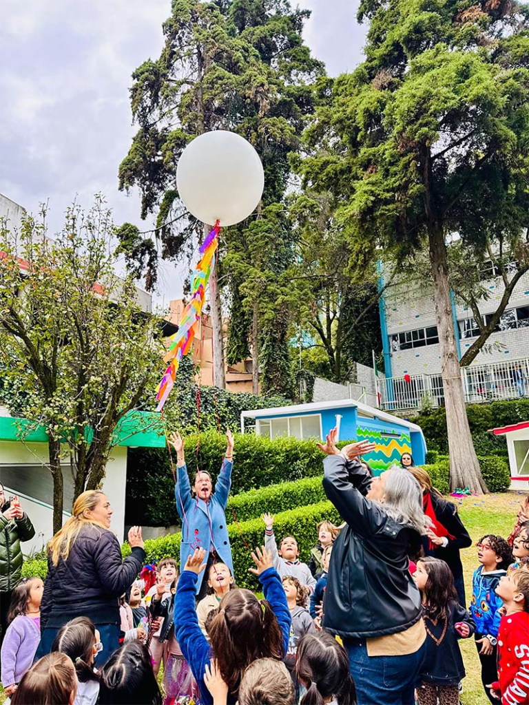 Después de romper las piñatas, juntamos todos los listones y los amarramos a un globo. Entre niños y misses lo soltamos para que llevara las cartas con Santa Claus. Mientras el globo subía, no faltaron las preguntas: si sí iba a llegar, si Santa lo iba a ver y cuánto tardaría en llegar hasta donde él está. El globo se fue haciendo cada vez más chiquito hasta que desapareció, pero la emoción se quedó.