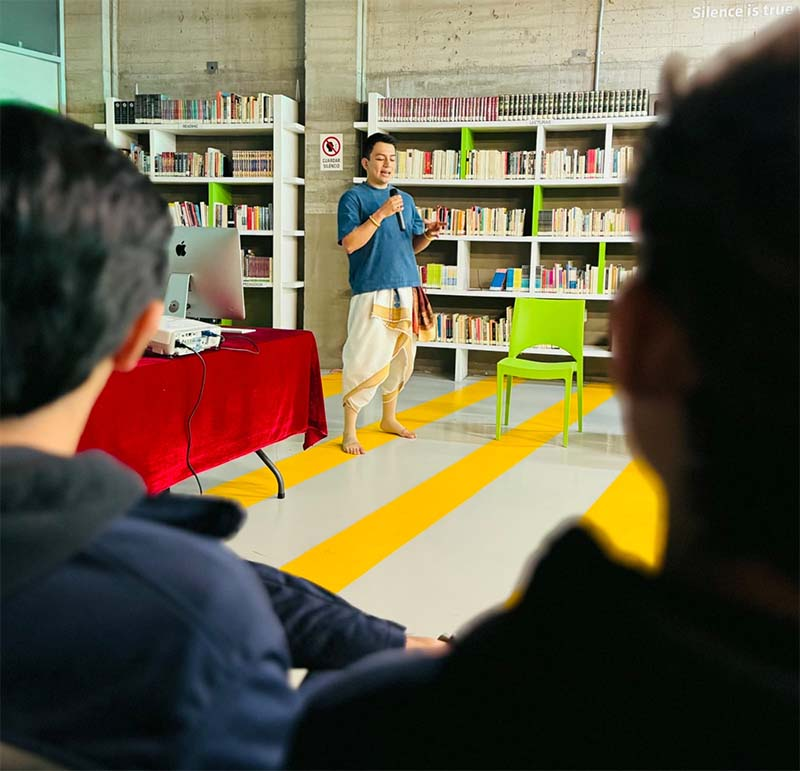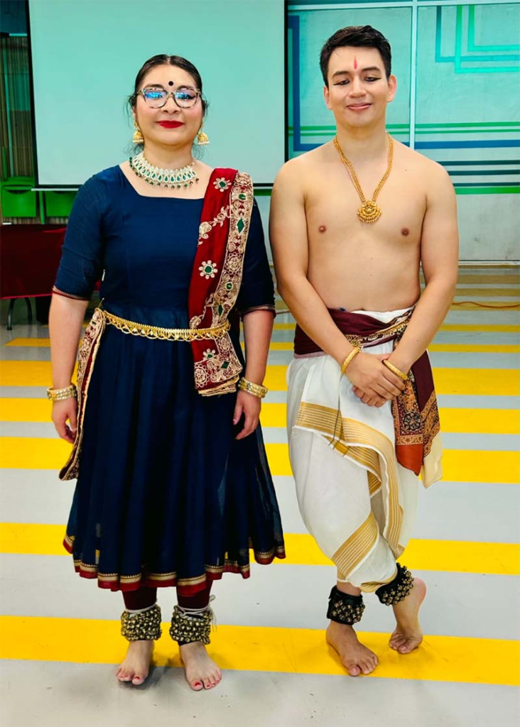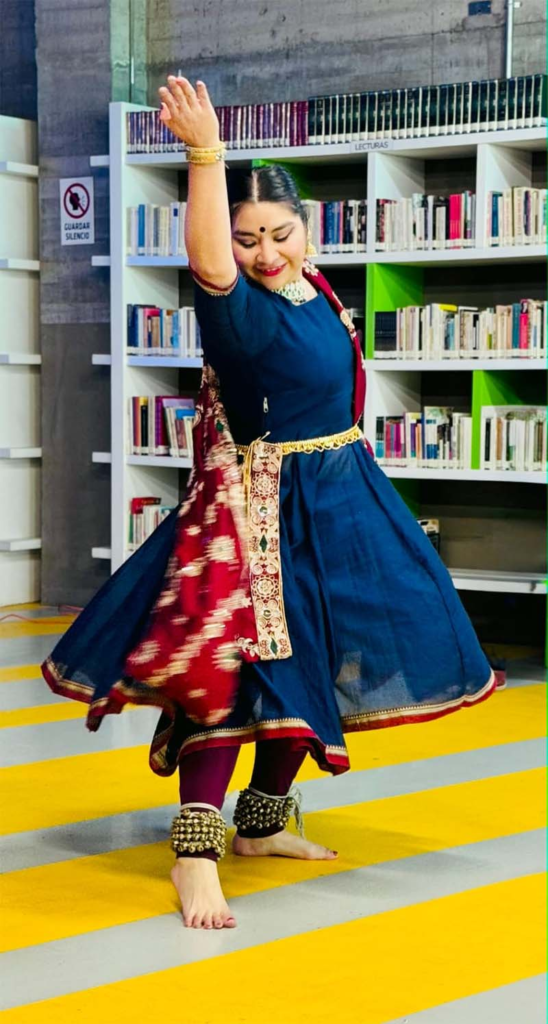La sesión estuvo a cargo de la maestra Pilar Godínez Mejía y del invitado especial Ricardo Iván Román Torres, quienes mostraron cómo estas danzas (como el Kuchipudi y el Kathak) combinan gestos, miradas y ritmo para contar historias sagradas. Cada movimiento tiene un significado, y hasta los cascabeles en los tobillos tienen su propio simbolismo, representan el sonido del universo.